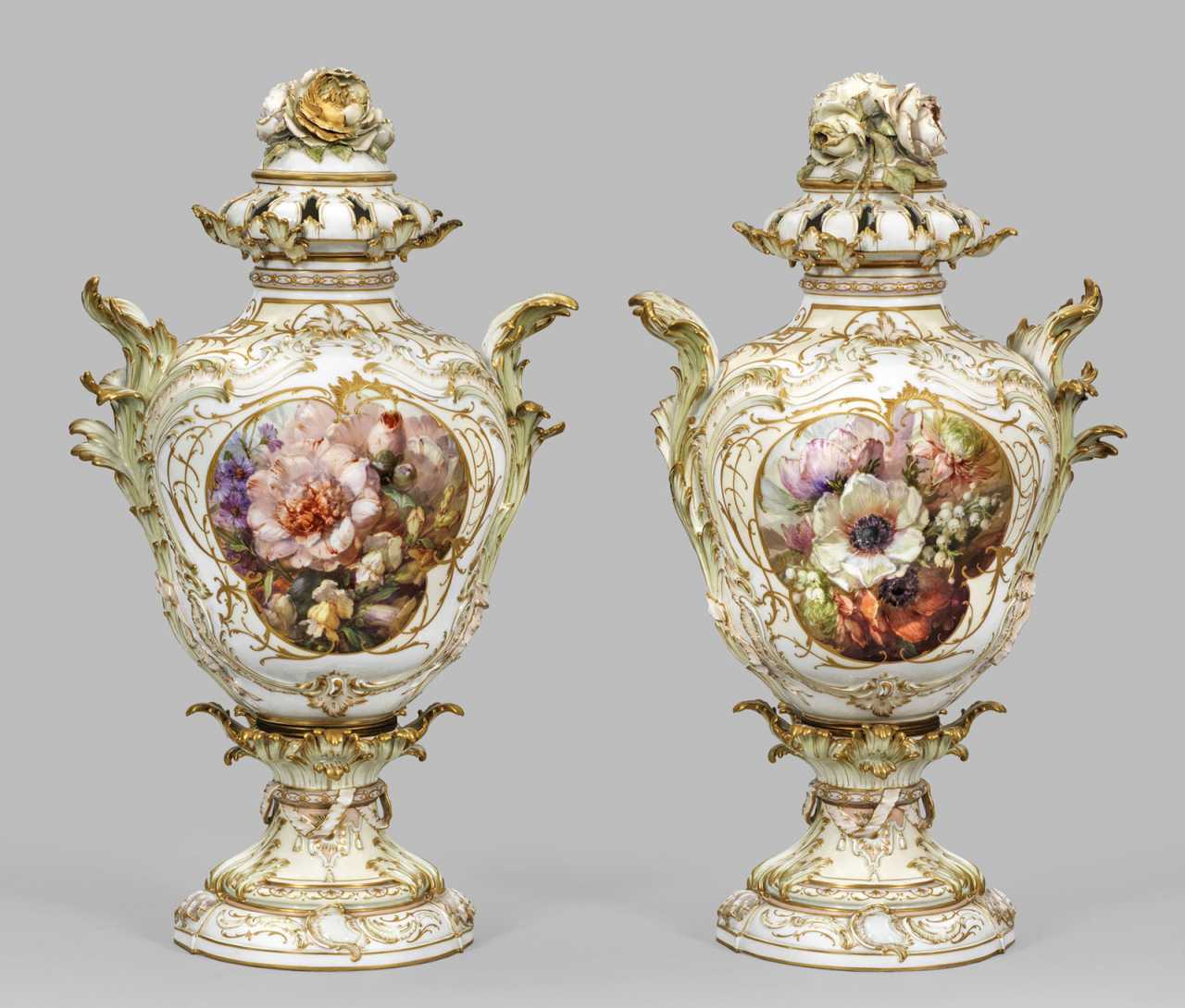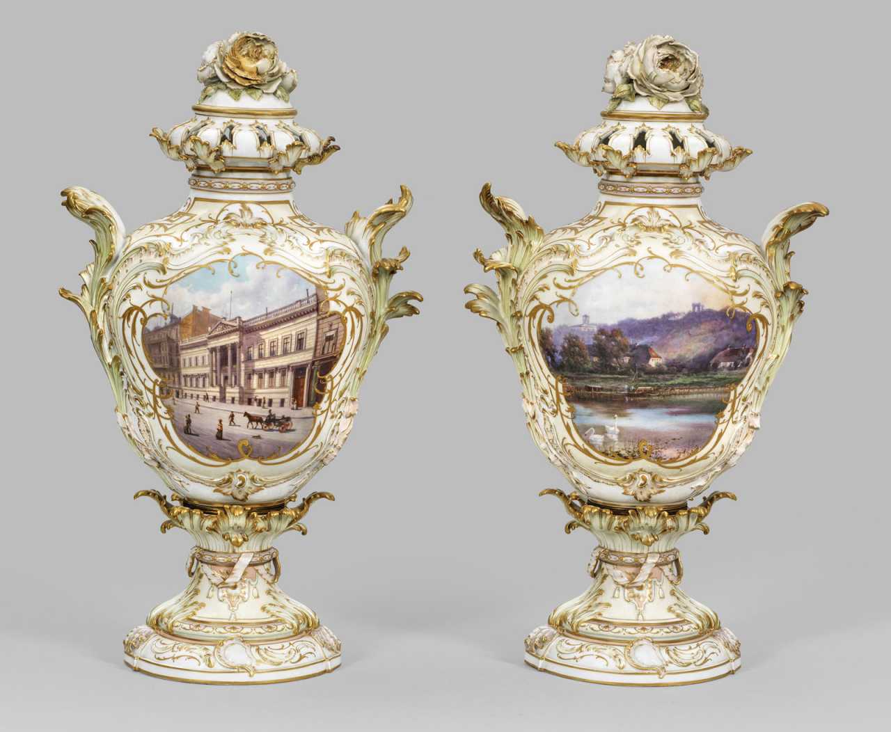 173) KPM Berlin, grosses Potpourrivasen-Paar, Weichmalerei von Franz Aulich